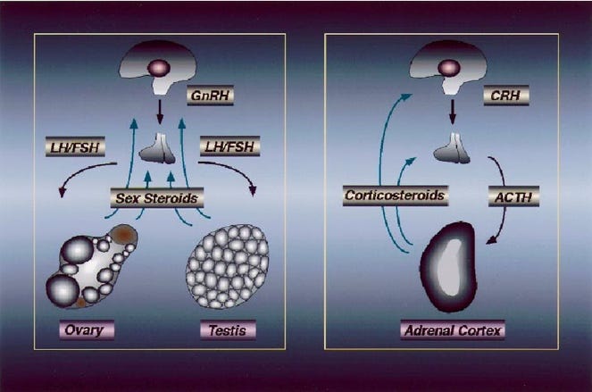 (iii) Finally, medicine in general only talking about the so-called hypothalamic-pituitary-adrenal axis. Isn’t it time to extend this axis—considering everything described here—to the ovaries, making it the hypothalamic-pituitary-adrenal-ovarian axis? We think so!