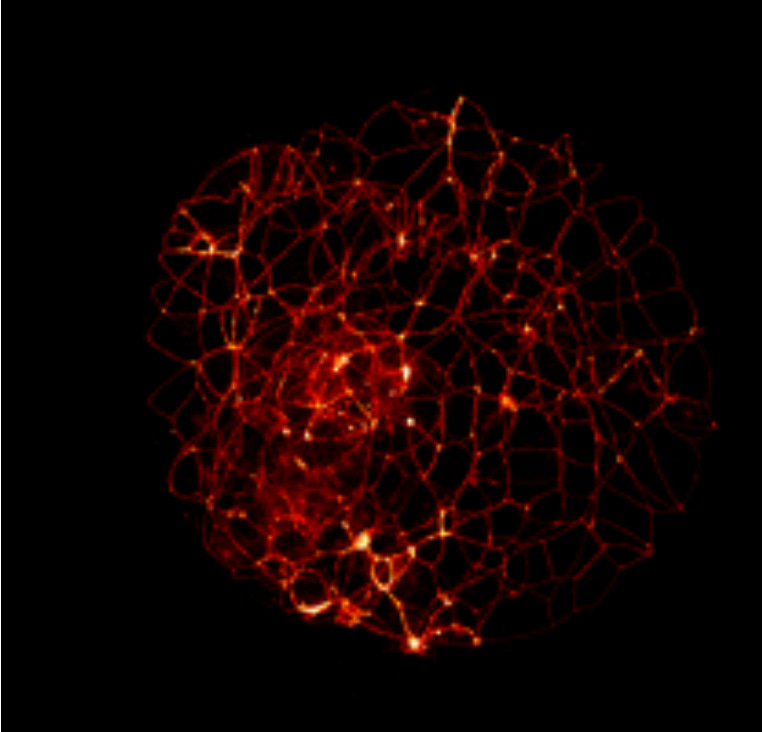 Figure 4. A similar blastocyst-stage embryo is shown after staining for a muscle protein known as actin. The linear pattern shown defines each of the cell boundaries that make up the outer cells of the trophectoderm that will go on to form the placenta.