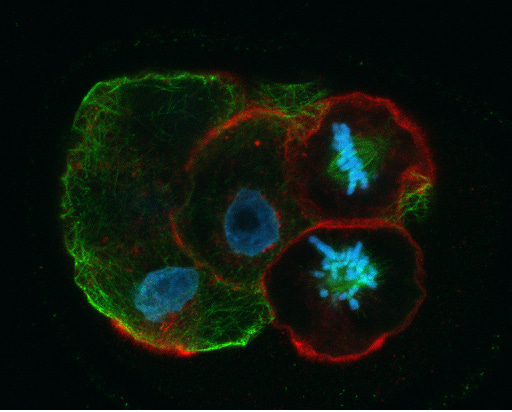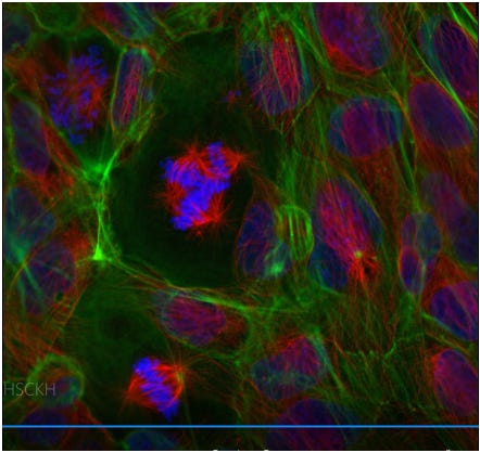 BRIEFING: Our photo gallery this time has the theme, cells dividing every which way! It features possibly one of the most remarkable processes in all of biology and medicine, cell division! While the static images gathered here may tell a story about the working machinery at play when both our genomes (chromosomes) and cytoplasm become perfectly separated into two “equivalent” daughter cells, watching this process in action is something we encourage our readership to enjoy on the internet. The star of this “show” is the spindle: a complex amalgam of cytoskeletal components known as microtubules and actin filaments that, under the orchestration of many regulatory molecules, see to it that, in most cases, cell division proceeds according to plan. That this may not always happen can be for better or worse for the products of mitosis or meiosis!