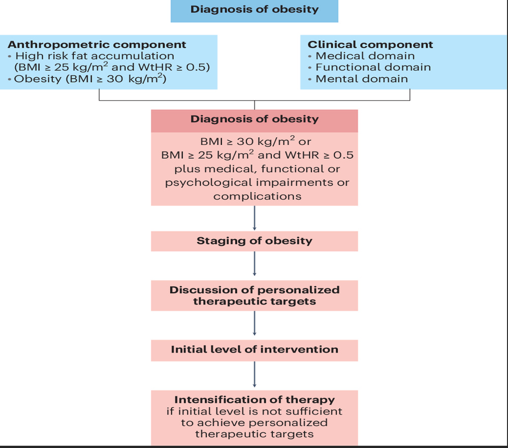 Below figure reflects in graphic format the new framework for diagnosis, staging, and management of obesity proposed by the European Association for the Study of Obesity, recently proposed after a consensus process in Nature Medicine (1).