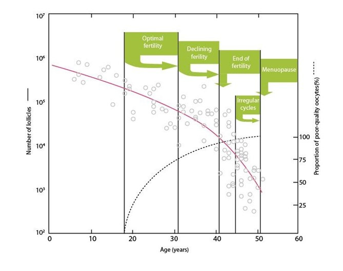 Both quantity and quality (aneuploidy rates) decline with age.