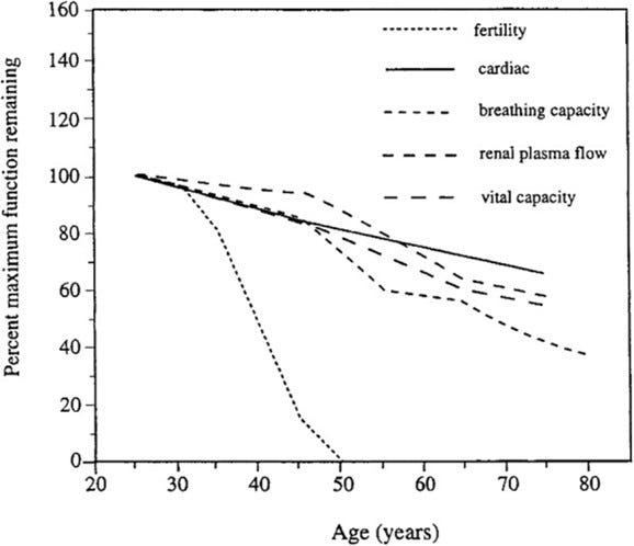 There, of course, is no better example for the science of aging to study than ovarian aging because the ovary is not only the most obviously aging organ in humans but likely also the most important organ to enter almost complete senescence so long before other organs (see Figure 1 below).