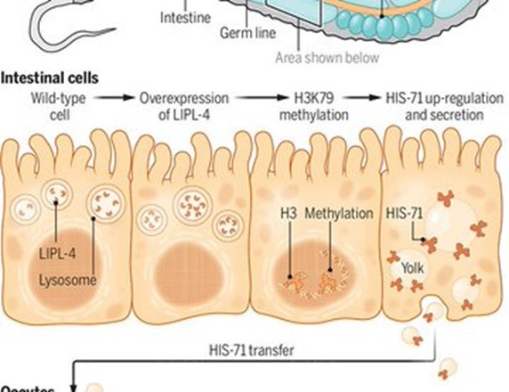 Increased activity of LIPL-4 in turn activated signaling in intestinal lysosomes (aren’t the guts involved in everything?) which led to increased transcription and production of variant histones H3.3 which then could be transferred to the germline, where it was modified by a methyltransferase and transmitted to progeny, where it extended lifespan. A commentary here, too, in the same journal further explained the process, making the point that, - though the original paper from China very well documented how lysosome activity can influence the epigenome (and with it transgenerational longevity), the process can also revert, - with signals from the epigenome going to the lysosomes.