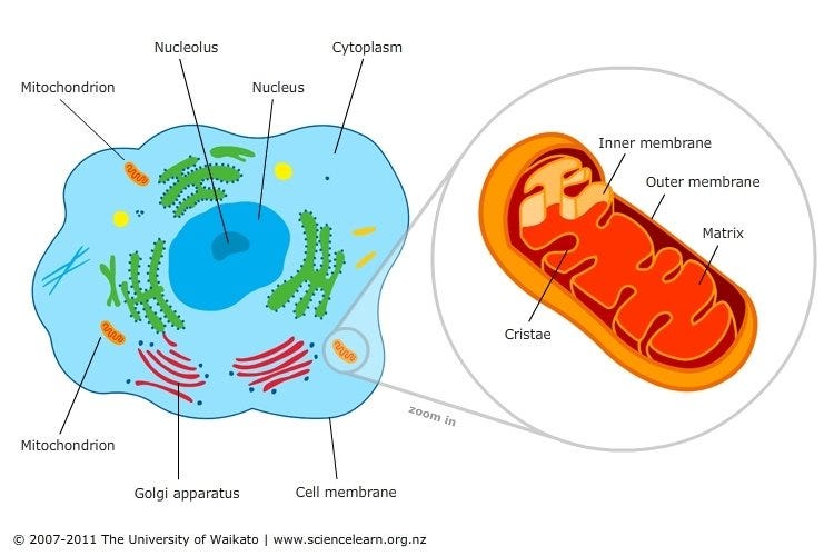 Facts are, however, somewhat different: Let’s start with an explanation of what the concept of TPBs really entails and why and when this concept may make sense. It all starts with mitochondria, membrane-bound organelles in every cell of our bodies that play an essential role in what is called cellular respiration (i.e., the process that converts nutrients into energy). Chemical energy produced by mitochondria is stored in a small molecule called adenosine triphosphate (ATP).⁵ Mitochondria, therefore, are frequently also called the powerhouses or batteries of our cells. In addition, they play other important roles in cell signaling, cell death, and—for that and other reasons—are widely implicated in the aging process (a very important point we will return to a little later when it comes to ovarian aging).