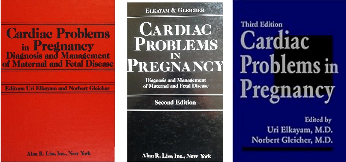 The other he co-edited—again in several editions—with his medical school colleague and oldest friend, Uri Elkayam, MD, professor of cardiology at UC Los Angeles, called “Cardiac Problems in Pregnancy,” with Elkayam responsible for the maternal side of the book and Gleicher for the fetal side. This book not only became “the bible” of pregnancy cardiology but also became the basis for Obstetrical Cardiology, being widely recognized as a subspecialty of cardiology.